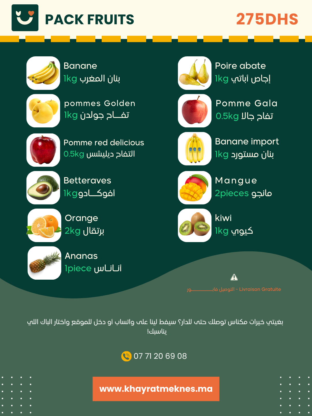 Nous proposons trois formules de livraison à Meknès, selon le montant de votre commande :