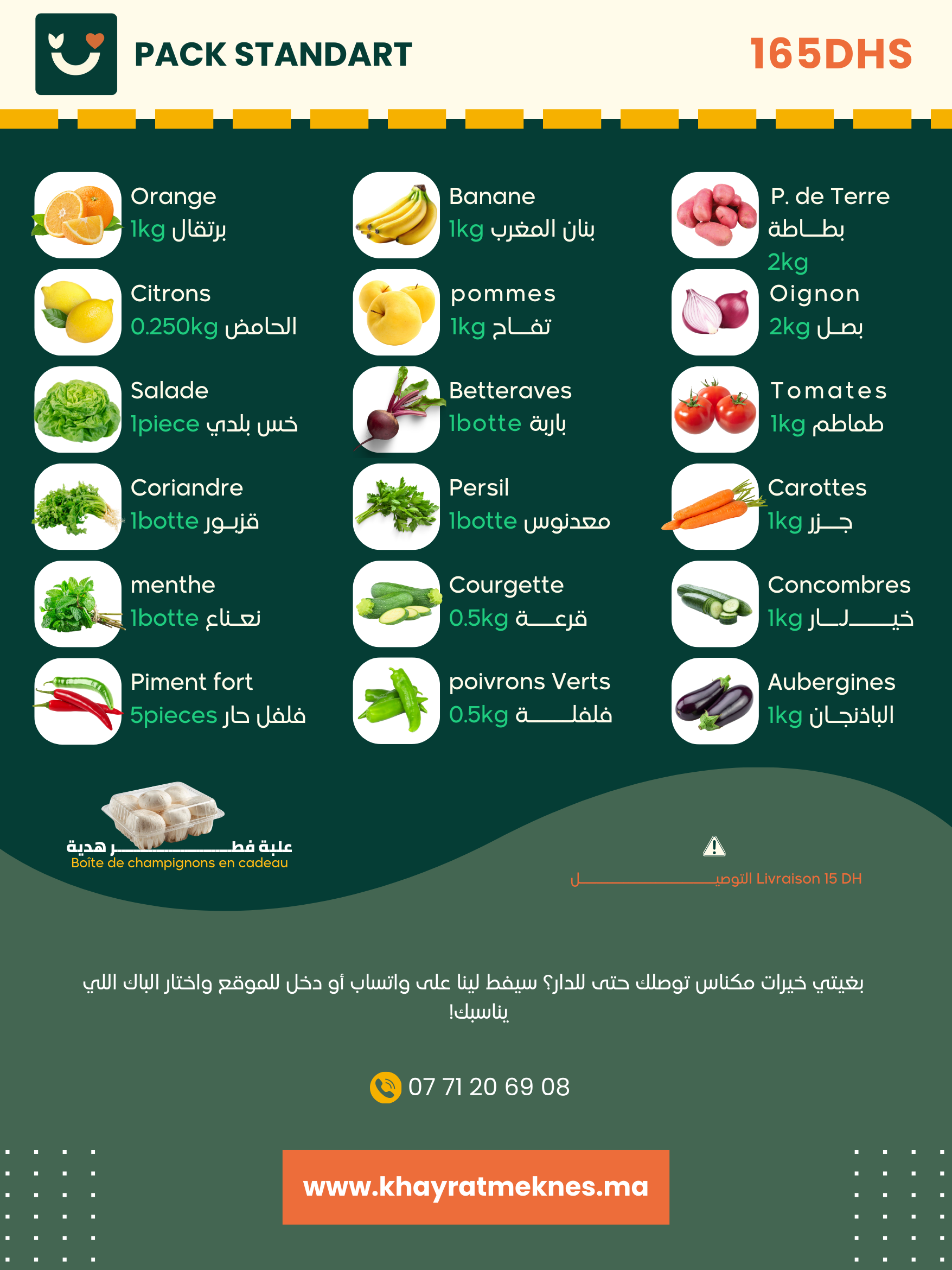 - التوصيل 15 درهم إلا كان الطلب أقل من 249 درهم 🟡
